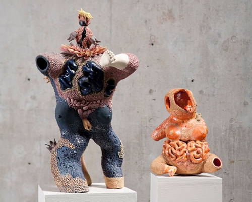 写真 左: 影の希望 / The hope of shadow / 2010陶、ガラス / Ceramic,glass / W23×D22×H43cm 右:希望の影 / The shadow of hope /2010陶、ガラス / Ceramic , glass / W23×D17×H28cm